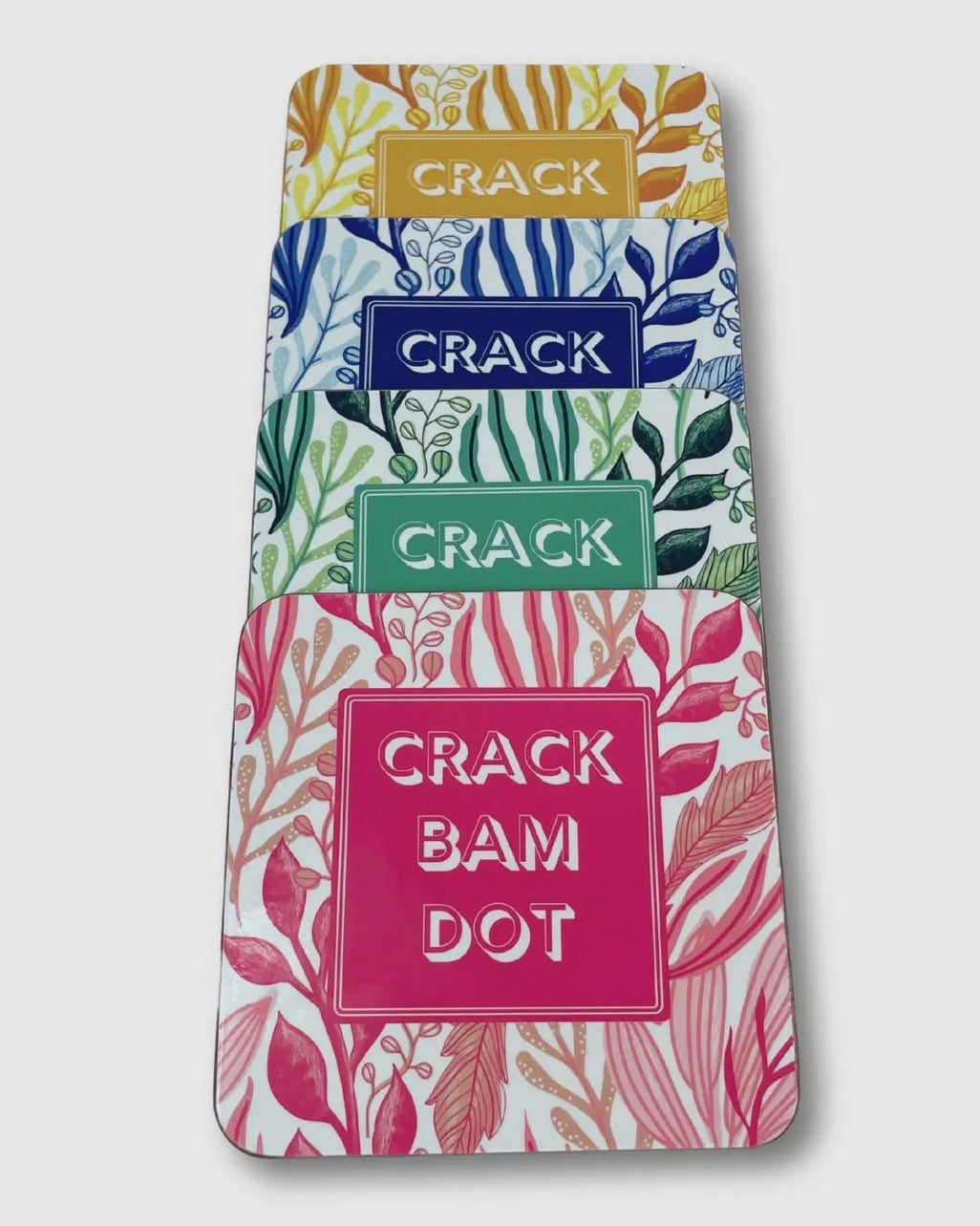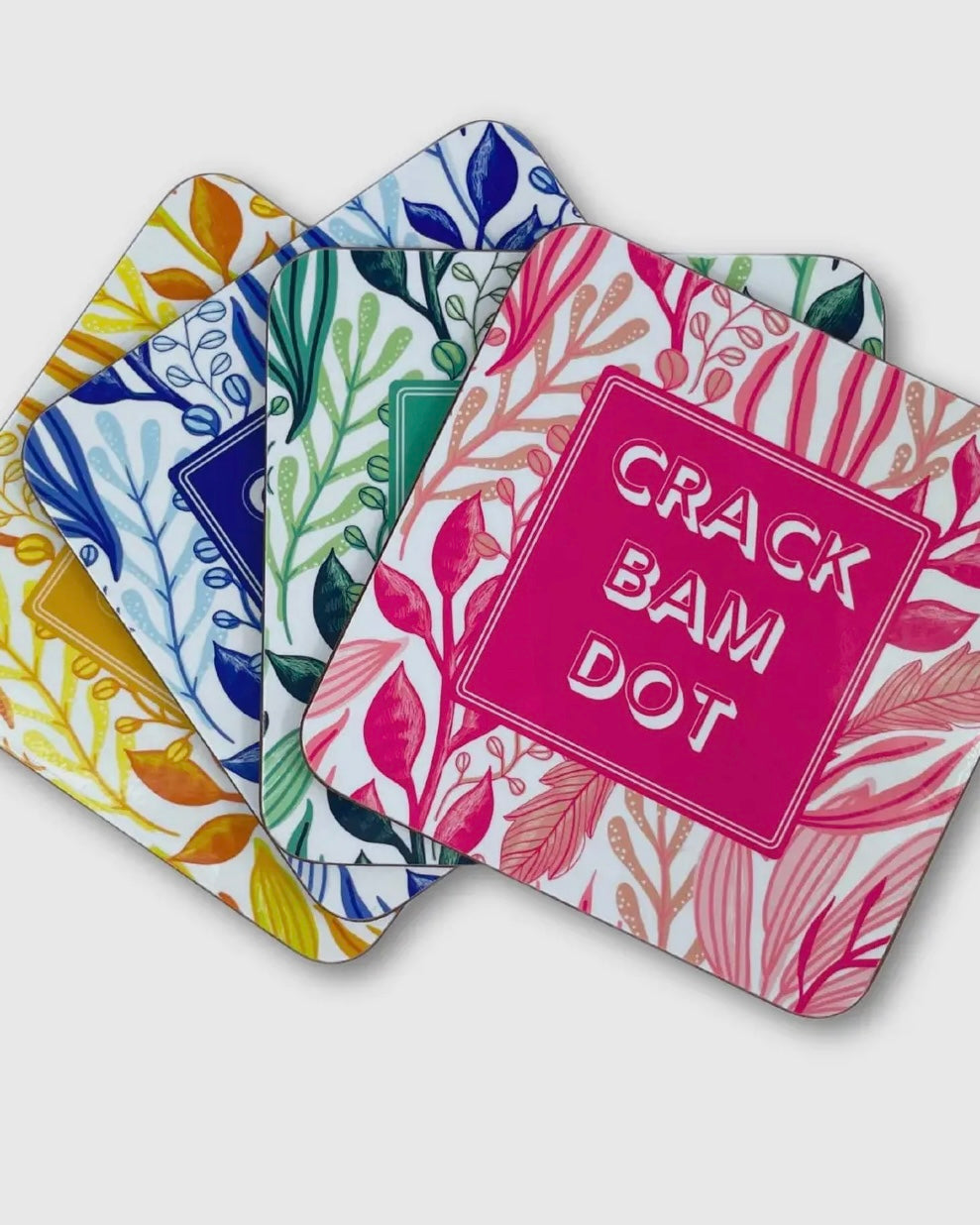 🀄 Expressive Mahjong Design: Each coaster boasts the lively "Crack Bam Dot" pattern, capturing the essence of Mahjong's timeless symbols. With a set of 4 coasters in stunning Pink, Blue, Green, and Yellow hues, you'll infuse your gaming space with a splash of color and character.