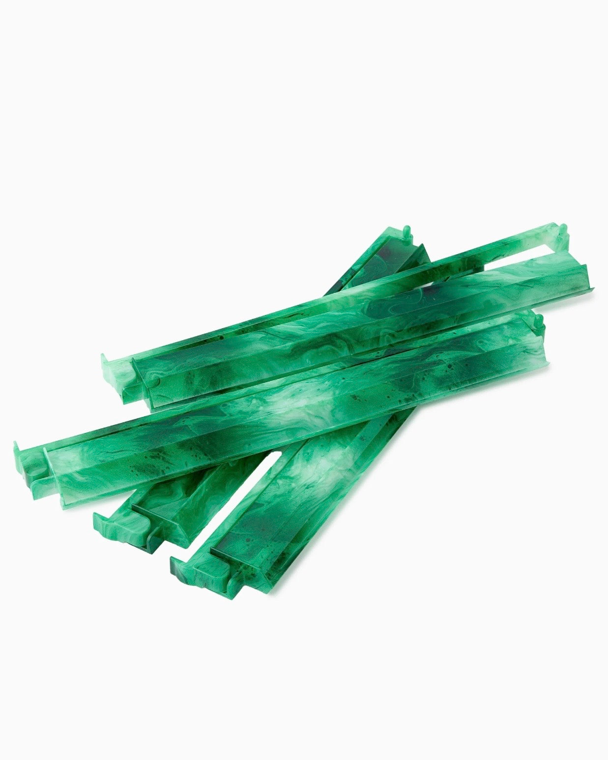 Each set includes four agate green acrylic racks with attached pushers, expertly designed for smooth handling and an elevated presentation. With an 18.5-inch stack length, these racks ensure seamless gameplay while making a striking style statement. Pair them with our Let’s Rack and Roll bag for chic, protective storage between games.