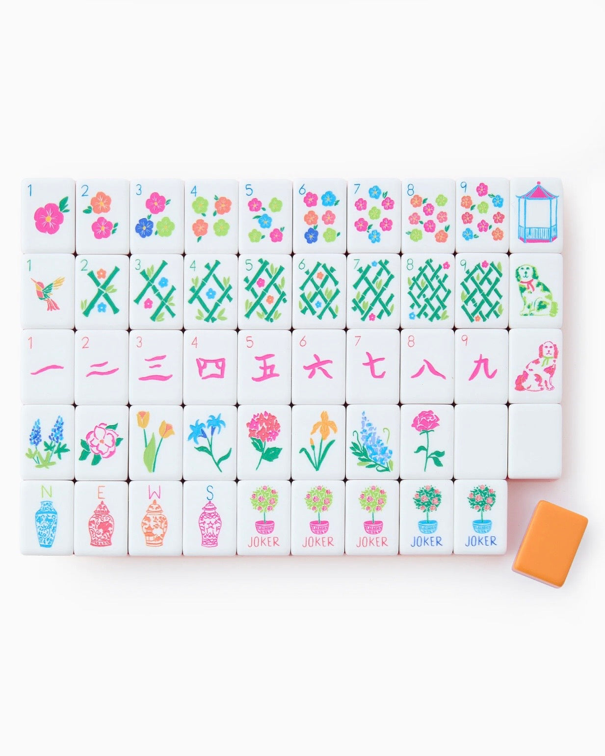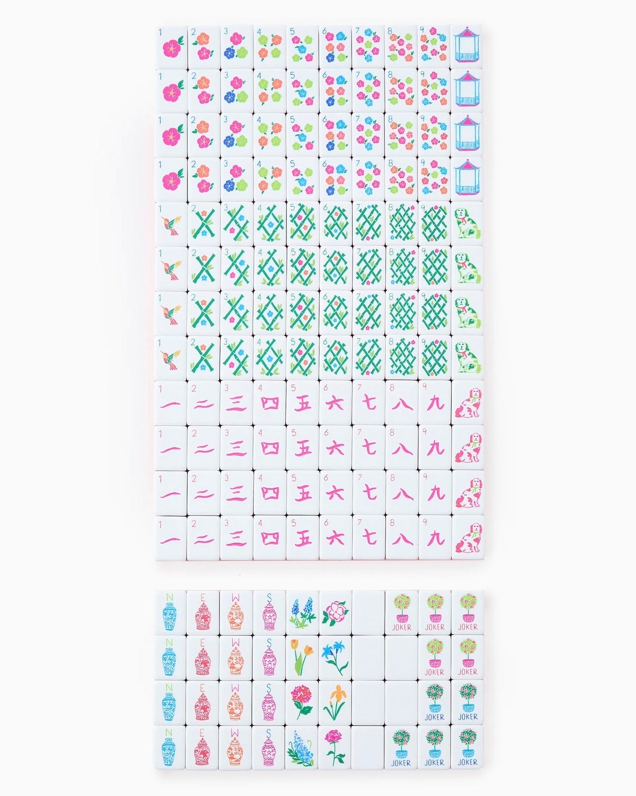 Individual Tiles Size: .87” Wide x .75” Deep x 1.25” TallSet includes Tiles, Dice/Coin Bag and 4 Instructional Cards (If playing American Mahjong, will need to purchase NMJL Playing Card separately.