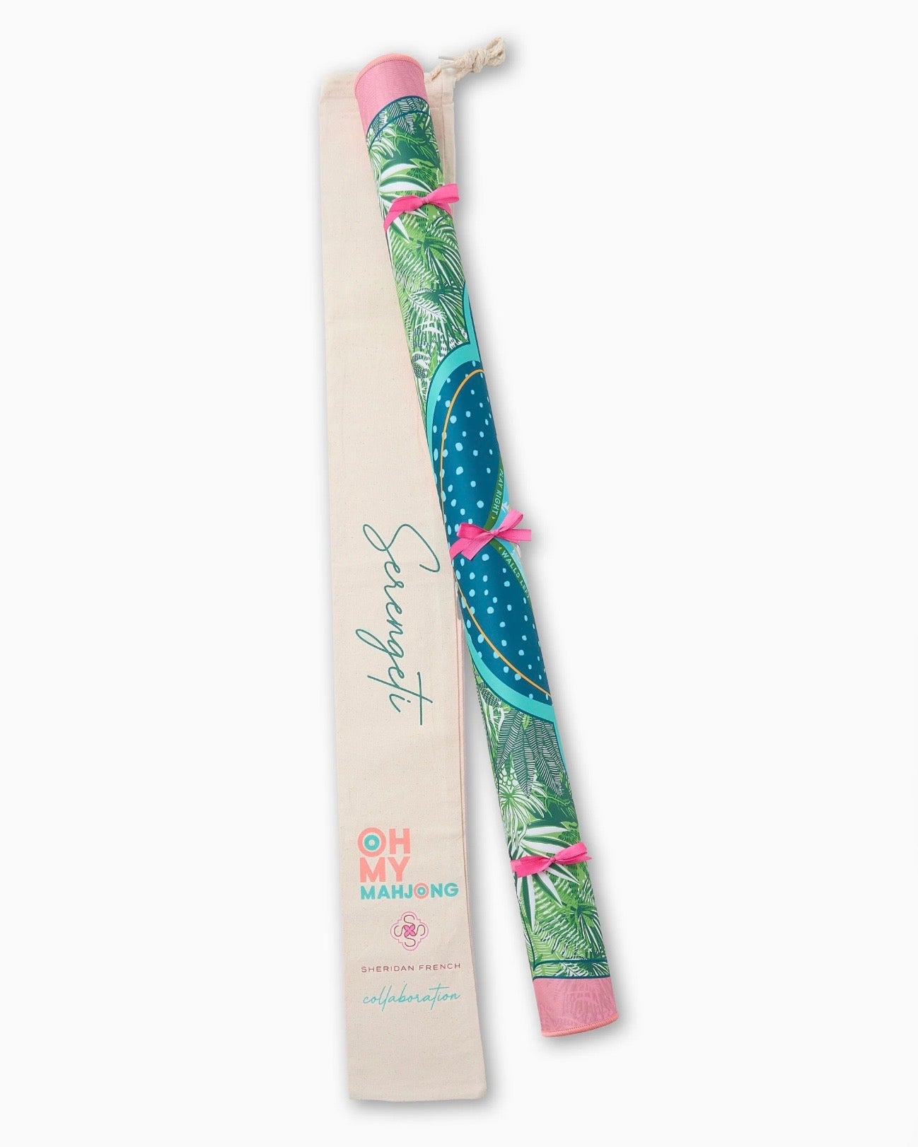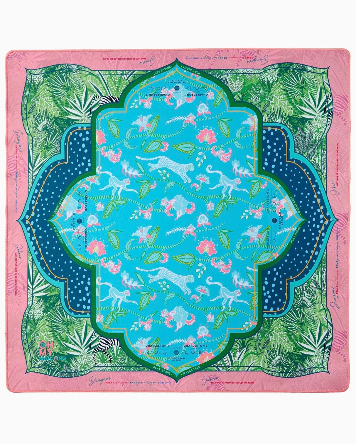 Go wild for the Serengeti Mat, a stunning collaboration with Fort Worth-based fashion designer Sheridan French. Inspired by the jungle's playful spirit and rich beauty, this mat features a lush palette of aqua, coral, and tropical greens, brought to life with cheeky monkeys, striped zebras, and vivid jungle foliage. Designed to pair beautifully with the Glow Wild Tiles (but versatile enough to match many of our sets), the Serengeti Mat brings a sense of adventure, color, and charm to every game.