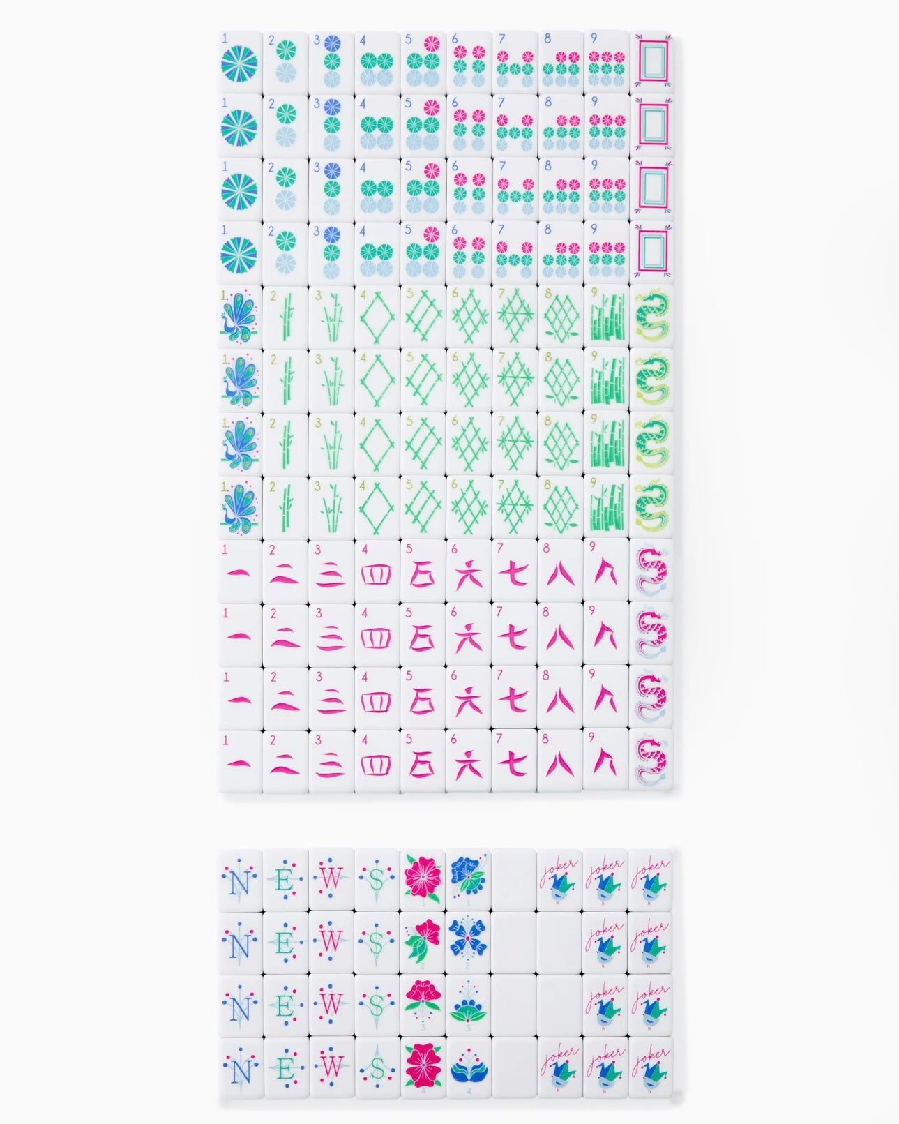 Set includes Tiles, Dice/Coin Bag and 4 Instructional Cards (If playing American Mahjong, will need to purchase NMJL Playing Card separately.