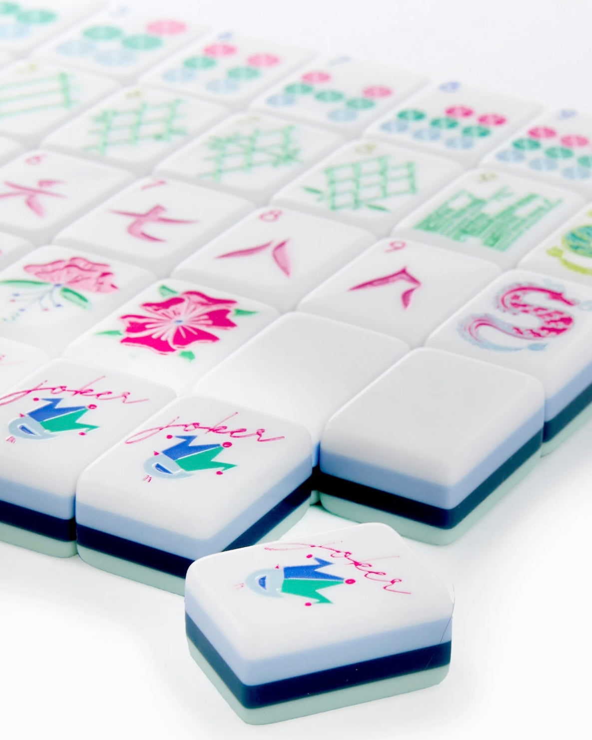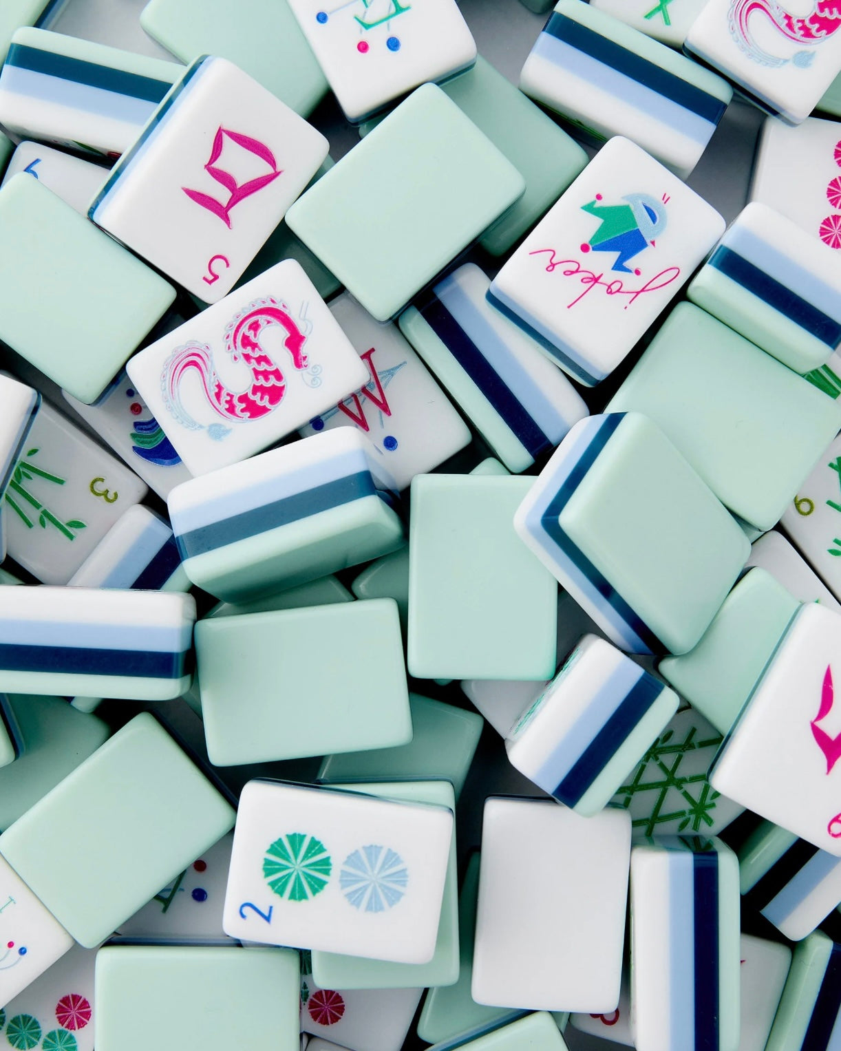 Introducing the Birdie Mahjong collection, inspired by the game's most eye-catching element - the vibrant blue and green Bird Bam! This set features a captivating interplay of navy, seafoam, and light blue tiles, guaranteed to turn heads at your next Mahjong night. These tiles are crafted from high-quality materials for lasting use, the Birdie line is perfect for players of all levels. Each set includes a complete set of 160 tiles, making it the ideal gift for Mahjong lovers or a luxurious upgrade for your game nights. So ditch the boring tiles and add a touch of elegance - Let's play Mahjong with the Birdie collection!