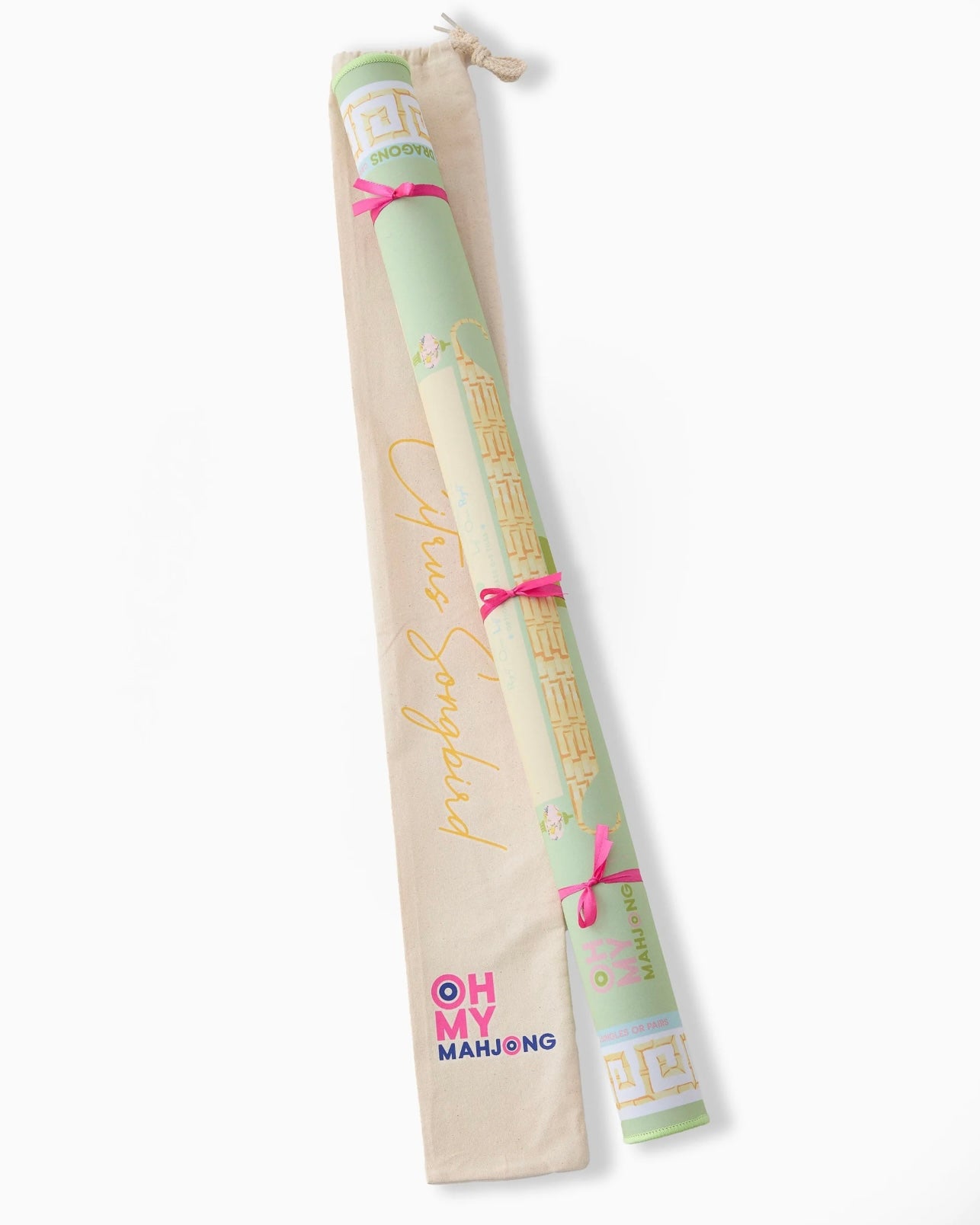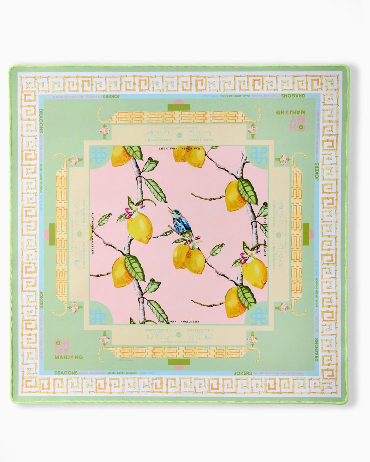 Infuse your game with elegance and whimsy with the Citrus Songbird Mat, a beautiful collaboration with CoCo Zentner! This mat showcases a delicate palette of pale green, pink, and yellow, perfectly complemented by a charming design featuring lemons and a pretty watercolor bird. The combination of soft colors and intricate details brings a refreshing, artistic touch to your mahjong sessions