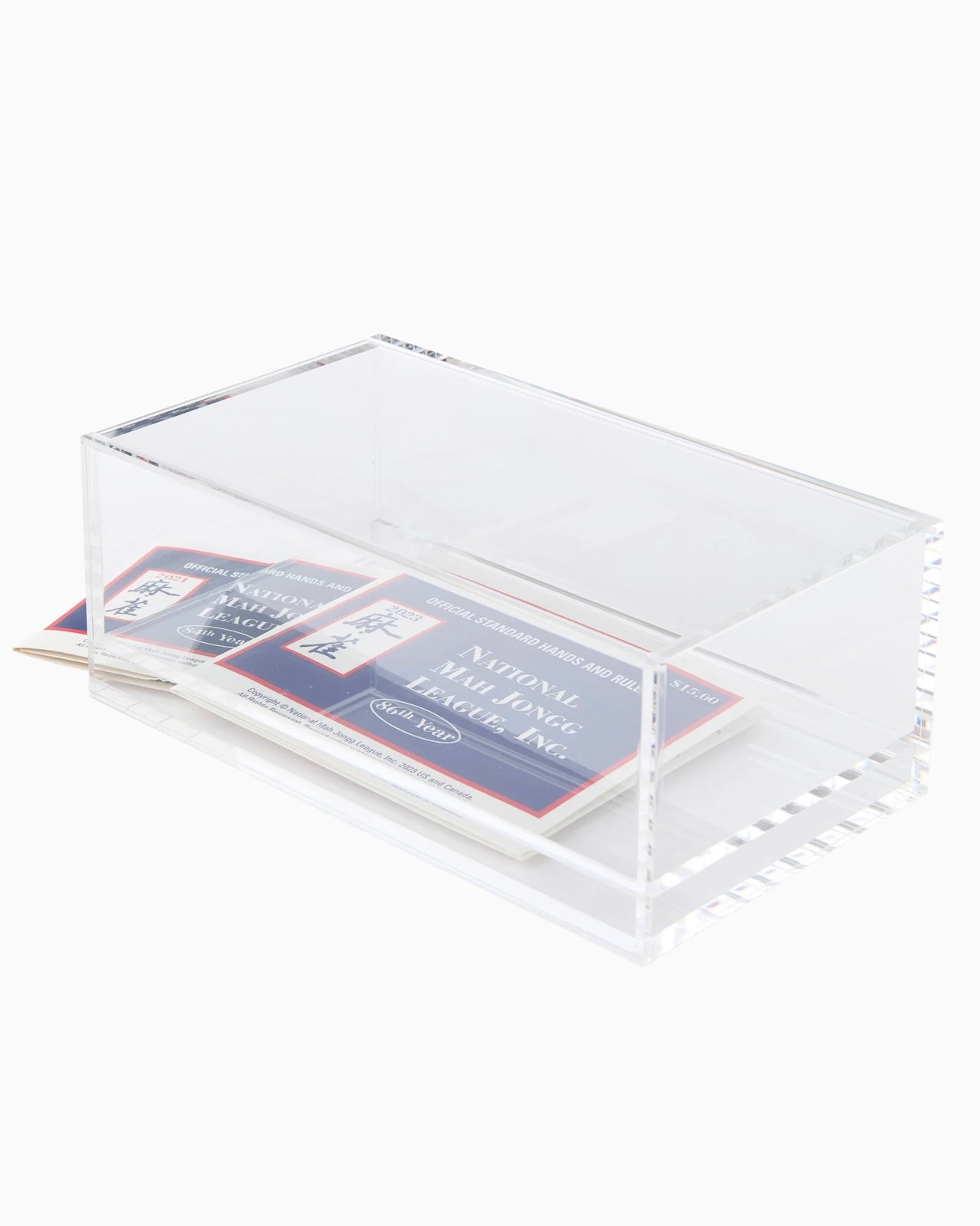 This box can hold Oh My Mahjong standard size Mahjong tiles, all displayed for your viewing pleasure. Plus, there's a slot to store your National Mah Jongg League playing cards - because let's be real, you're a serious player.