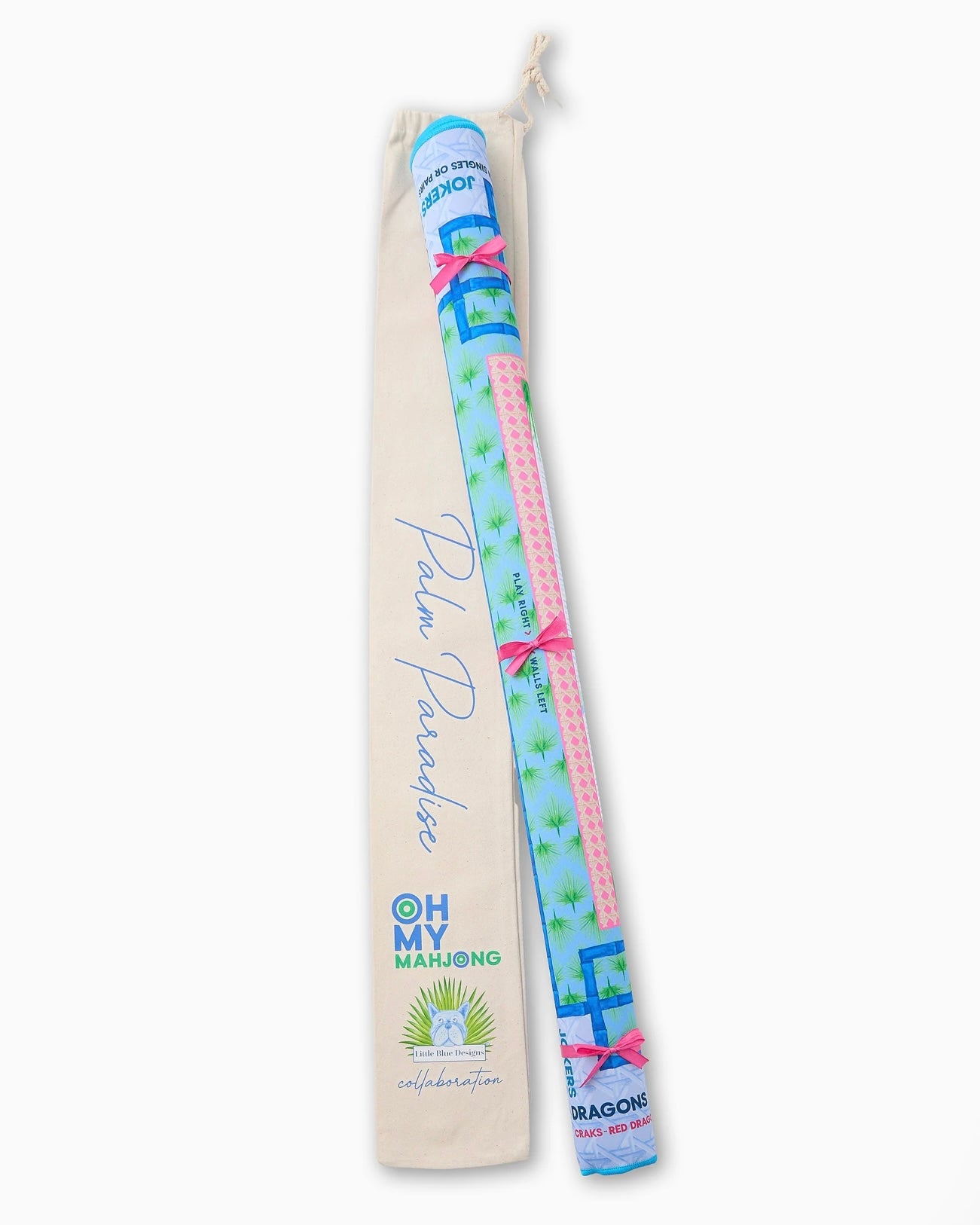 The Palm Paradise Mahjong Mat, a stunning collaboration with Little Blue Designs’ Stephanie Troxler, brings a breezy tropical elegance to your game nights. Designed to pair beautifully with the iconic Gatsby Tiles, this mat features lush watercolor palms in soothing blues and greens, perfectly accented with a playful pop of pink. It’s like a mini escape to an island retreat—no passport required. Made from neoprene for easy cleanup and featuring a secure rubber non-slip backing, Palm Paradise promises a seamless playing experience. Instructional reminders line the edges for a game that’s both chic and effortless.
