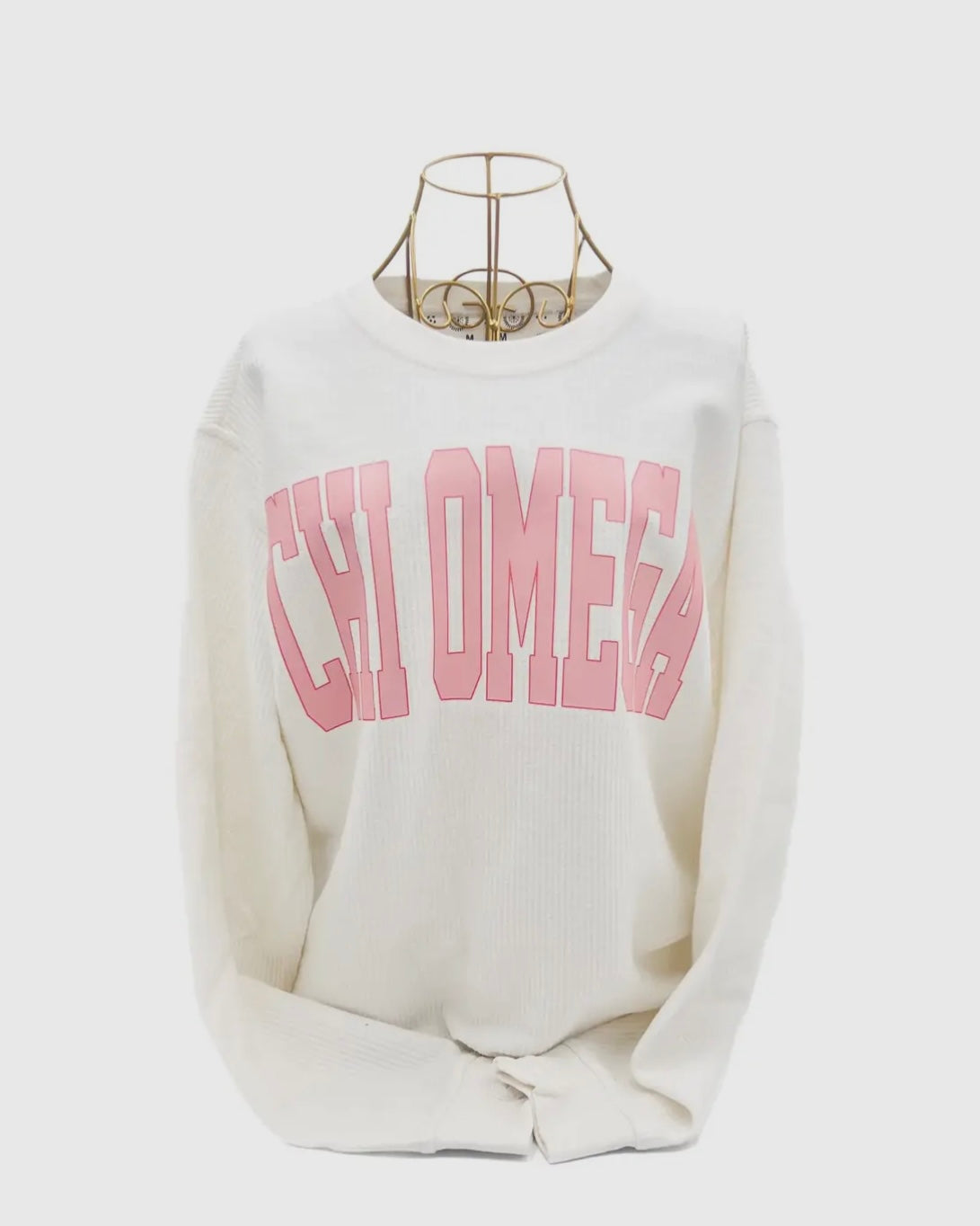 A lightweight, wear-everywhere favorite! This thin, ribbed sorority sweatshirt features a classic crew neckline and a soft, stretchy feel that’s perfect for layering. Cute, comfy, and easy to dress up or down — the ultimate campus essential.