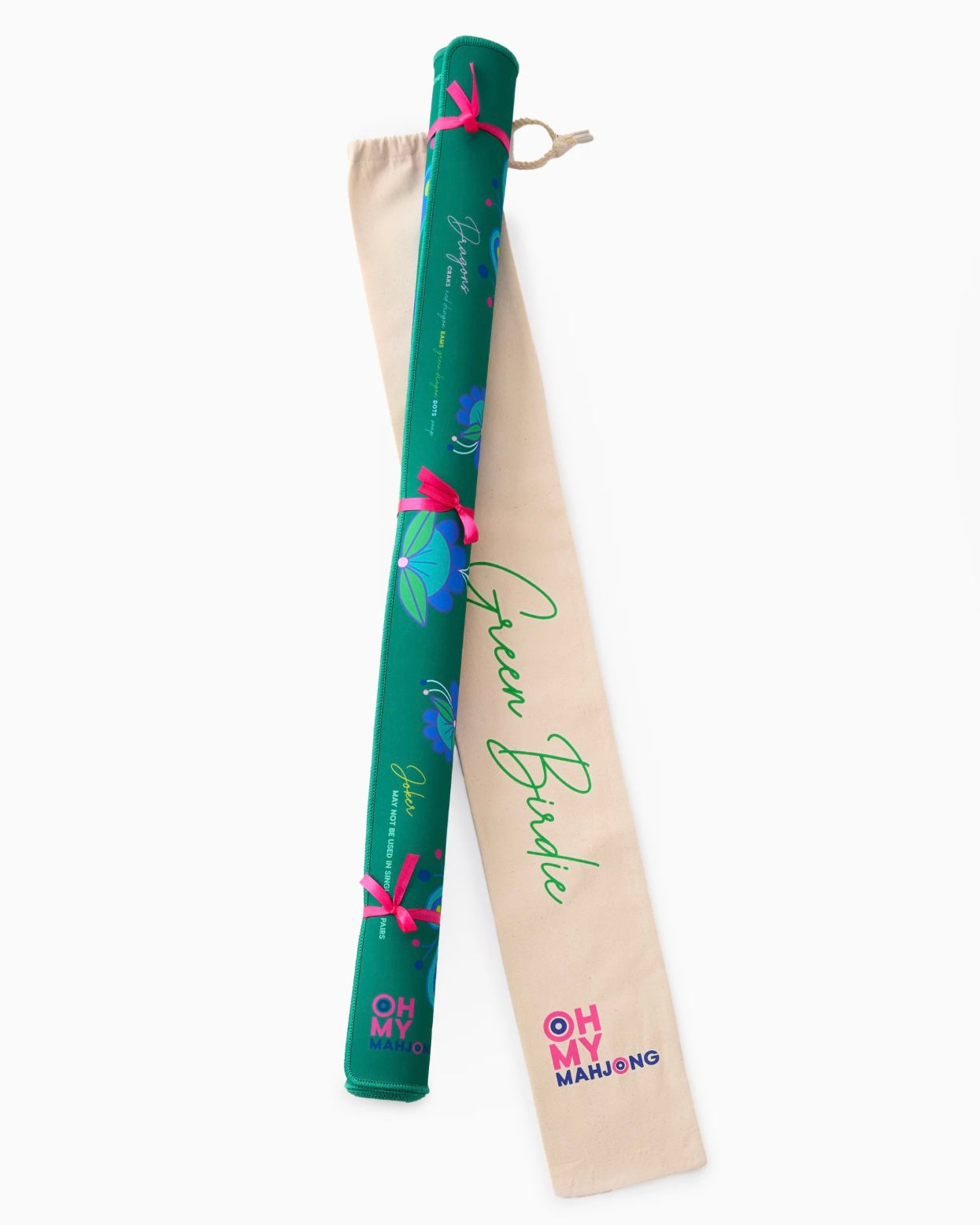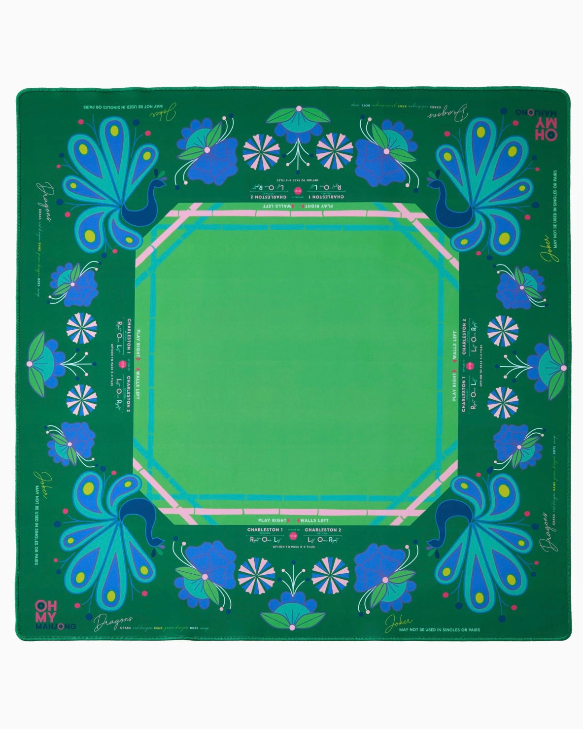 Introducing the Birdie Mahjong Mat! This vibrant mat features a stunning Birdie design and a non-slip surface to ensure your tiles stay put during even the most intense games. The Birdie Mahjong mat offers clear explanations directly on the mat, including the Charleston, suit and dragon pairings, wall direction, and the "no jokers in a pair" rule. Pairs perfectly with the Birdie Mahjong Tiles!